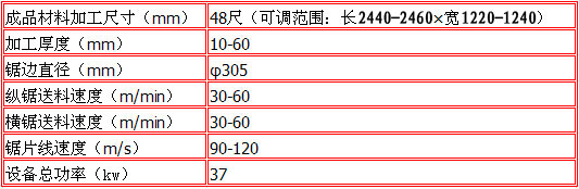 建業(yè)順達(dá)機(jī)械全自動鋸邊機(jī)技術(shù)參數(shù):
